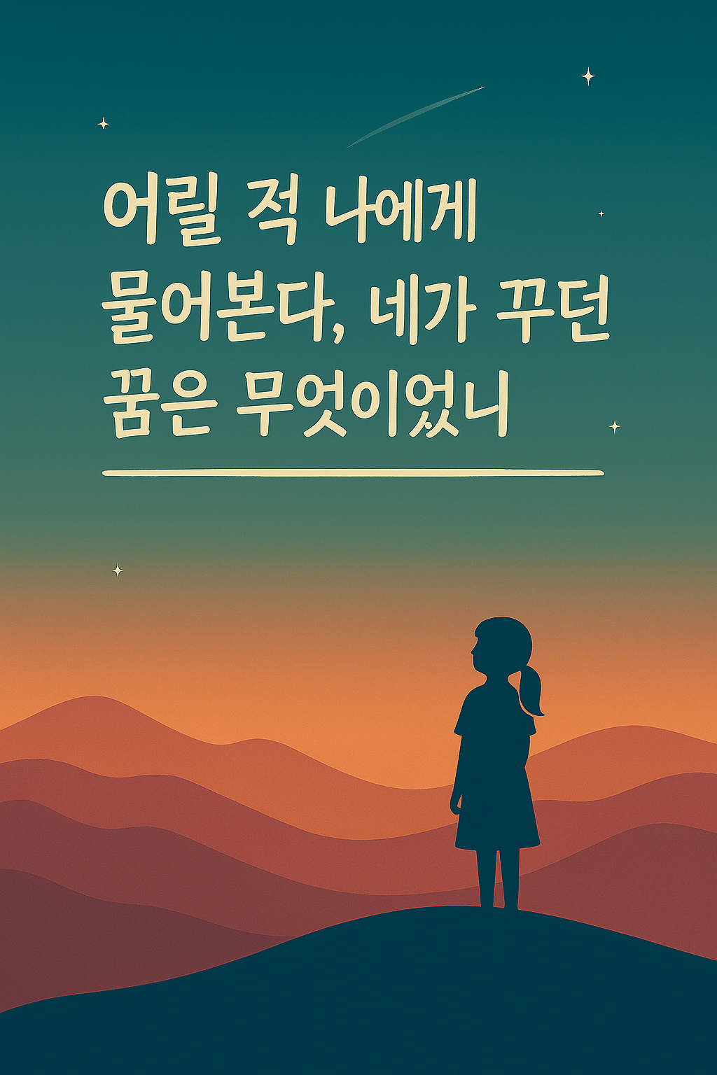 당신의 어린 날은 지금도 당신 안에 살아 있습니다. 그때의 꿈은 잊히지 않았습니다. 다만 잠시 묻혀 있을 뿐입니다. 오늘 하루 잠시 멈추어, 그 어린 나에게 다시 물어보세요. “네가 꾸던 꿈은 무엇이었니?” 그 대답 속에 당신의 내일이 숨어 있습니다.